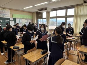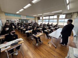 2回目の授業参観が11月13日(木)の1限~2限に行われ、教科の授業や総合的な学習の発表会等を公開しました。また、黒部市が力を入れている英会話科の授業も公開され、英会話科担当者とALTが連携して授業を行いました。生徒は、保護者等が見守る中、学習活動に積極的に参加しました。参観してくださった保護者の皆様、関係者の皆様、ありがとうございました。