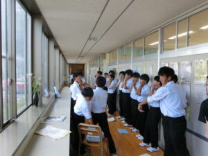 校舎内に歌声が響く時期となりました。1年生は初めての合唱コンクールに向け、リーダーを中心に一生懸命取り組んでいます。