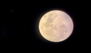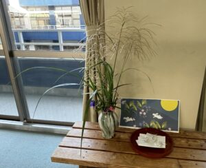本校の多目的ホールに10月6日(月)は中秋の名月にちなんだ展示物が置かれており、季節を感じる素敵な展示となっています。併せて本校のICT支援員さんが個人的に撮影された中秋の名月の写真をご紹介します。月の左側に写っているのは土星だそうです。興味のある方は月夜を眺めてみてはいかがでしょう。