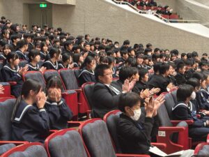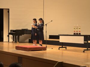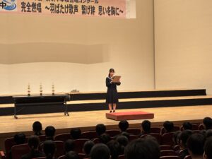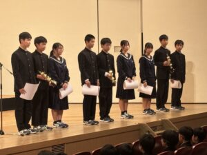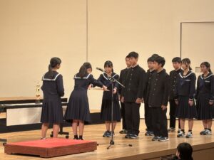 令和7年度清明中学校合唱コンクールが開催され、「完全燃唱 ~羽ばたけ歌声 繋げ絆 思いを胸に~」のスローガンのもと、各学級でこれまで練習してきた成果を十分に発揮し、すばらしいハーモニーをコラーレに響かせました。講評では、審査員としてお迎えした横内桂子さんが「1年生は素直に歌っていました。2年生は昨年に比べて声量が出てきました。3年生は、声に深みがありました。想いが伝わる合唱でした。ここまでともにがんばってきた仲間や、いつも寄り添い励ましてくださった先生方に感謝しましょう。来年も素晴らしい歌声が聴けることを願っています。」と生徒を労い、励ましました。合唱コンクールへの取り組みを通じて培った学級の団結力や粘り強く課題に取り組む態度を、今後の学校生活に生かしてほしいと思います。参観してくださった来賓の皆様、保護者の皆様、ありがとうございました。