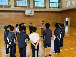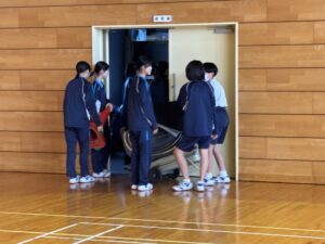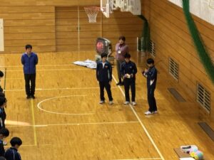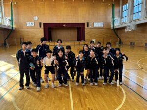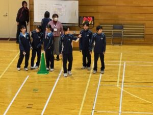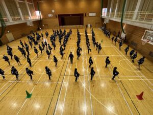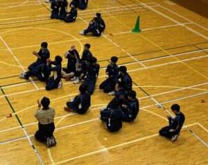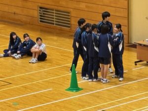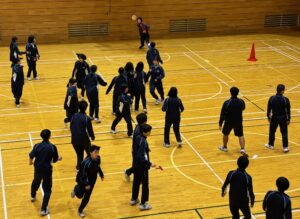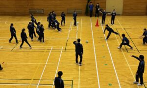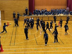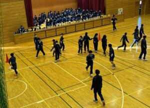 19日(金)の1~2限に学期末恒例の体育委員会によるレクリエーション大会が行われ、「王様ドッジ」で楽しいひとときを過ごしました。ルールは、「大原則として男女混合・クラス対抗で行い、予め決めてある各クラス2名の王様に早く当てたクラスの勝ち」というもので、生徒たちは各クラスの作戦に従い、一生懸命プレーしました。結果は1位1組、2位2組でした。企画運営をがんばった2年生体育委員の皆さん、ありがとうございました。