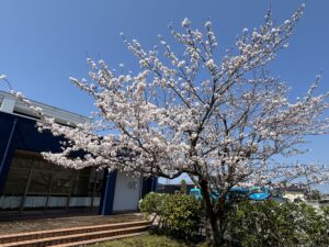少し肌寒い日が続きましたが、4月3日は天気に恵まれ、前庭の桜も見ごろを迎えています。職員室でも、進級・入学される生徒のみなさんを迎える準備を進めているところです。みなさんの令和8年度もこの桜の花のような素敵な一年になることを願っています。