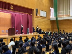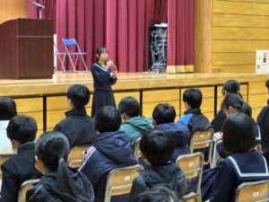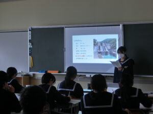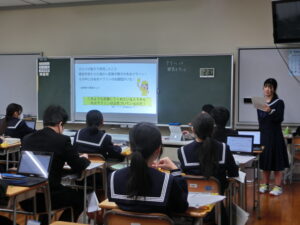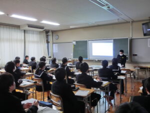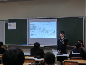 12月3日(水) 1学年では、総合的な学習の時間に、探究学習の発表を行いました。