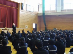 卒業式の式辞で話した羽生選手やカーリング女子選手のように、失敗しても挑戦し続ける粘り強さと、お互いの良さを認め合い、協力することを大切にしてください。